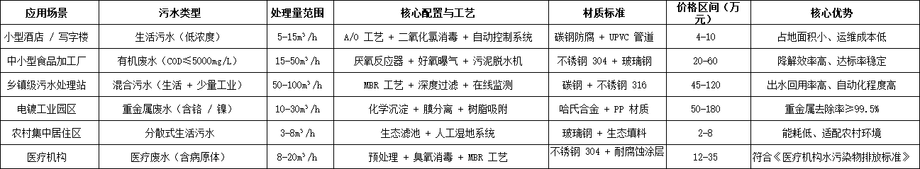 二、熱門(mén)場(chǎng)景污水處理設備價(jià)格表(精準版)