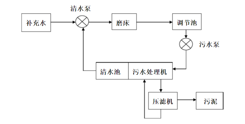 磨削工段的磨床在工作之時(shí)一般需要水作為冷卻劑,排出的冷卻水中含有磨料粉末及加工件的微小懸浮顆粒,冷卻水不經(jīng)處理直接排放的話(huà)會(huì )堵塞管道、污染環(huán)境。
